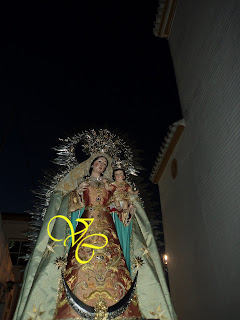 La Virgen de la Estrella, ataviada prácticamente igual que en su Coronación y en silencio, salió por la puerta trasera de la iglesia a las 20:30h. y entró pasadas las 22h.
